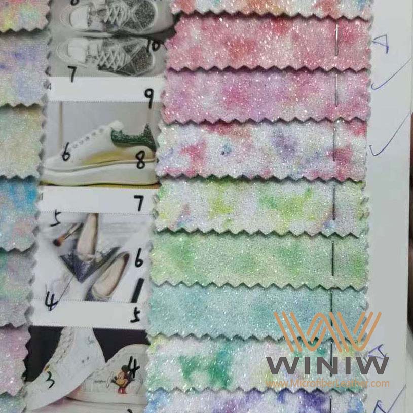 WINIW supply high-end Glitter Faux Leather, glitter leather fabric, glitter leather material, by the yards and in rolls, with microfiber leather backing, high tear strength, high tensile strength, high tear resistant, well used for footwear, bags, upholstery, etc.
