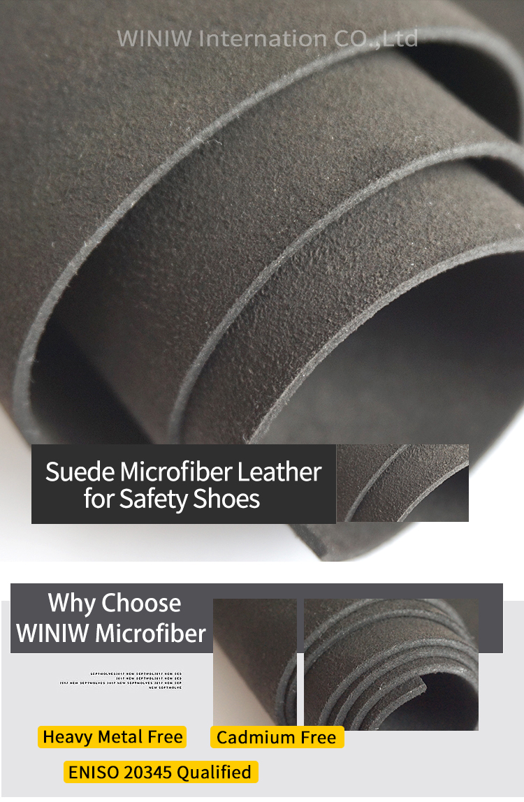 High quality waterproof synthetic suede suppliers in China! WINIW is professional supplier of high quality synthetic suede for safety shoes, we supply both SB and S2 quality standard synthetic suede, looks and feels same as cow suede leather, high strength and excellent durability, can replace cow suede leather for safety shoes and work boots upper perfectly!