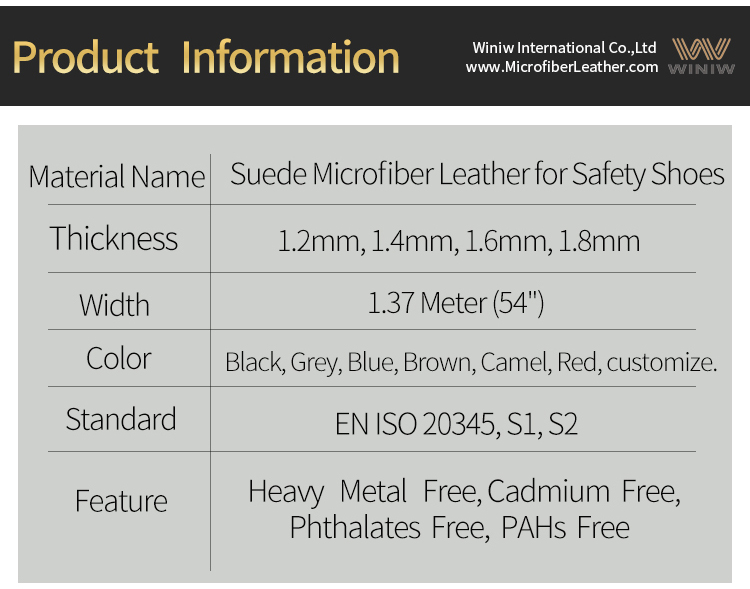 Specifications of WINIW Waterproof Synthetic Suede for Safety Shoes: