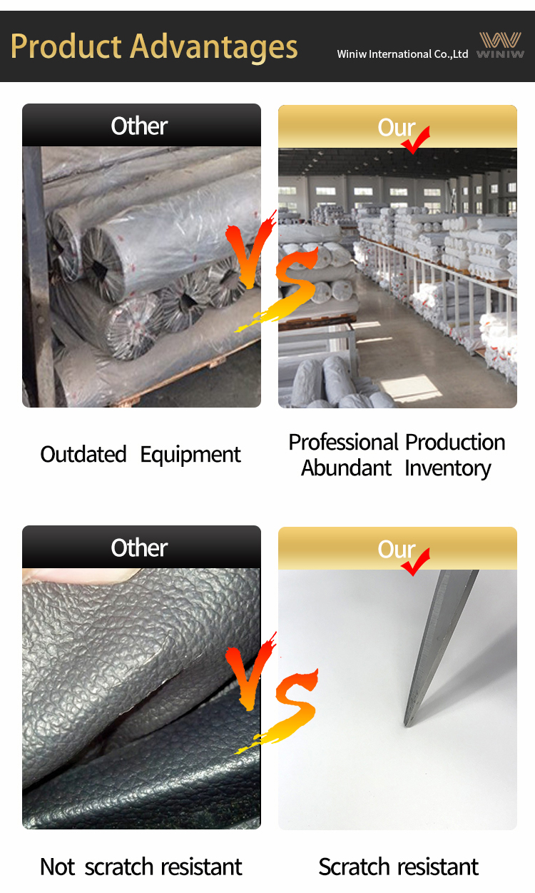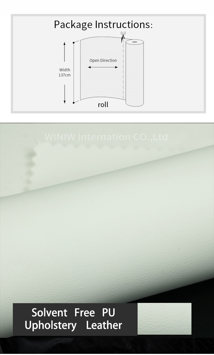WINIW supply qualityDMF-Free Solvent Free PU Synthetic Upholstery Leather Fabric, eco-friendly, DMF/Solvent free, no toxic, durable, no peel off, very nice surface touch feeling, well used for sofa upholstery, chairs, massage chair, etc.