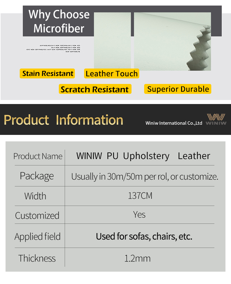 Material specification of WINIWDMF-Free Solvent Free PU Synthetic Upholstery Leather Fabric: