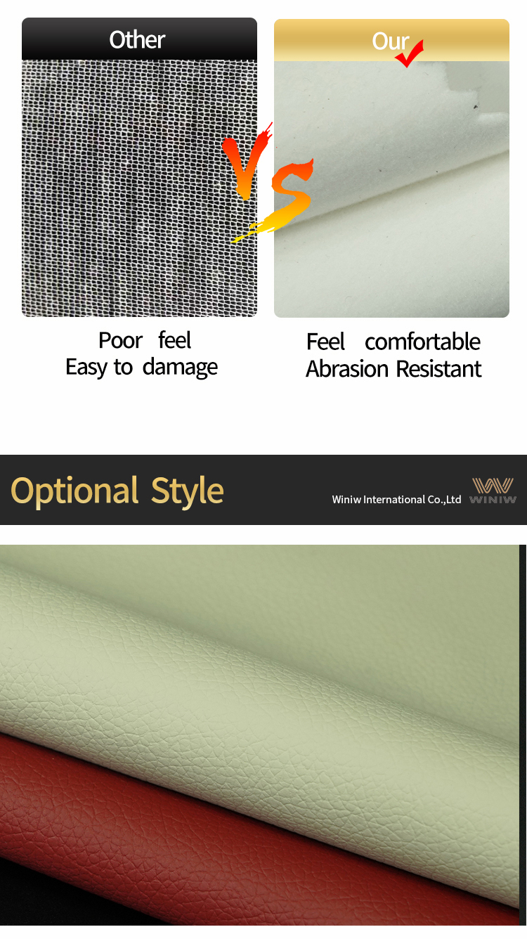 Detail Pictures of WINIWDMF-Free Solvent Free PU Synthetic Upholstery Leather Fabric: