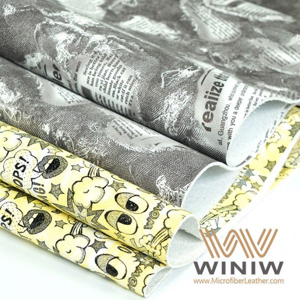 Newspaper Texture Shoes PU Patent Leather WINIW is specialized in supplying high-end Eco-Friendly Microfiber Vegan Leather, faux leather vegan leather, PU vegan leather, and other high quality vegan leather alternatives materials. Features ofWINIW Eco-Friendly Microfiber Vegan Leather Material: Natural-looking surface and touch Tensile and tear resistant. Much lighter weight than natural leather. Eco-friendly, free of